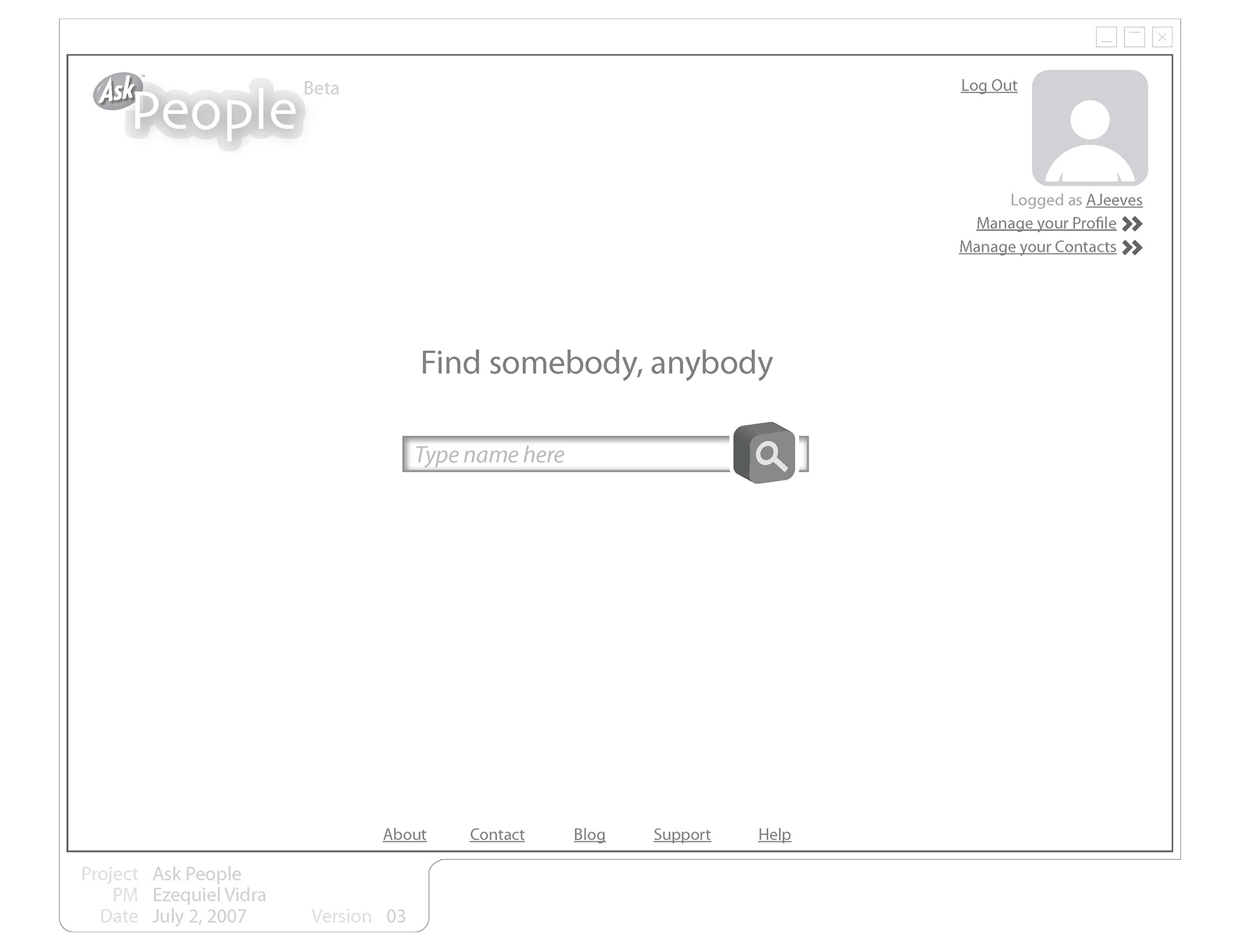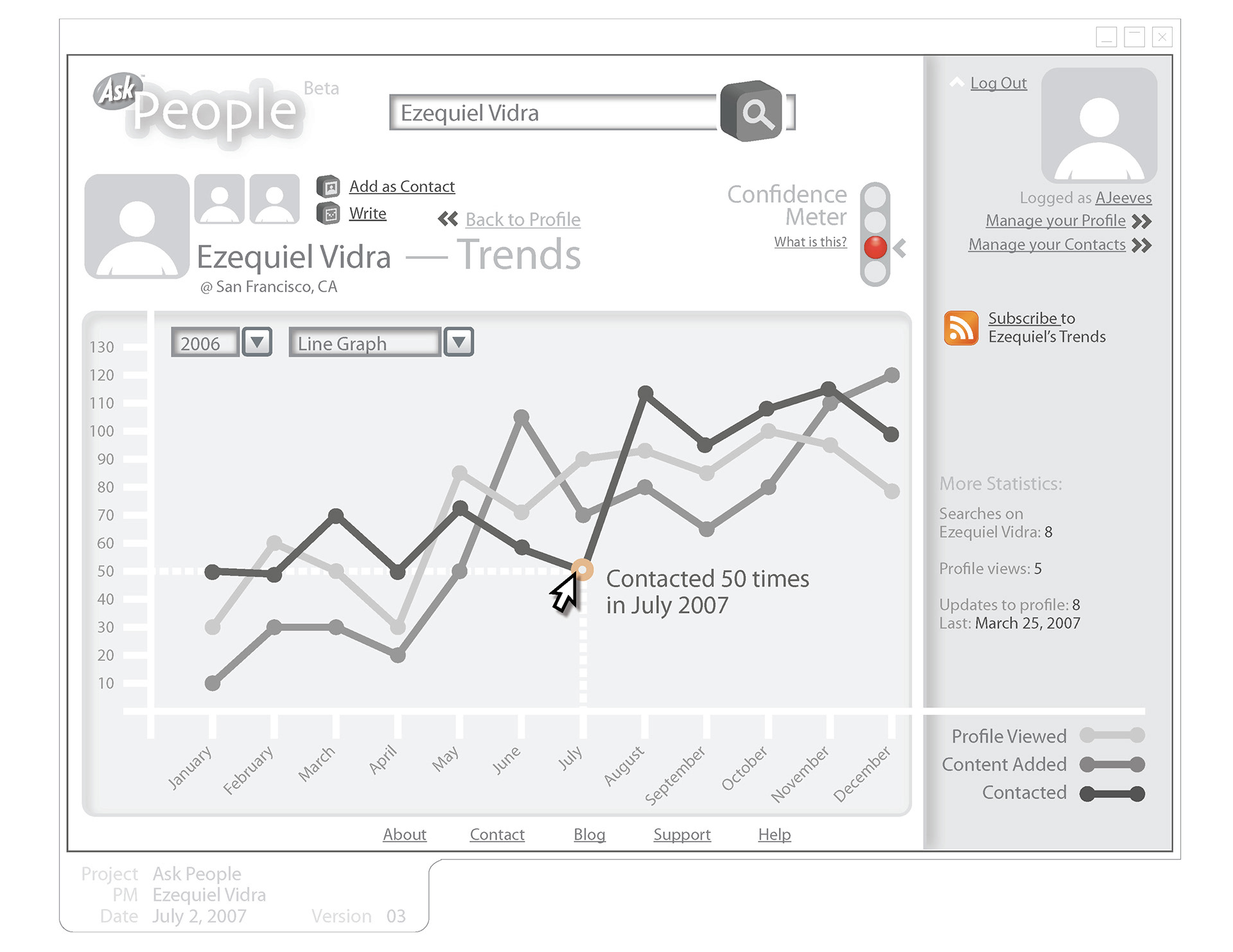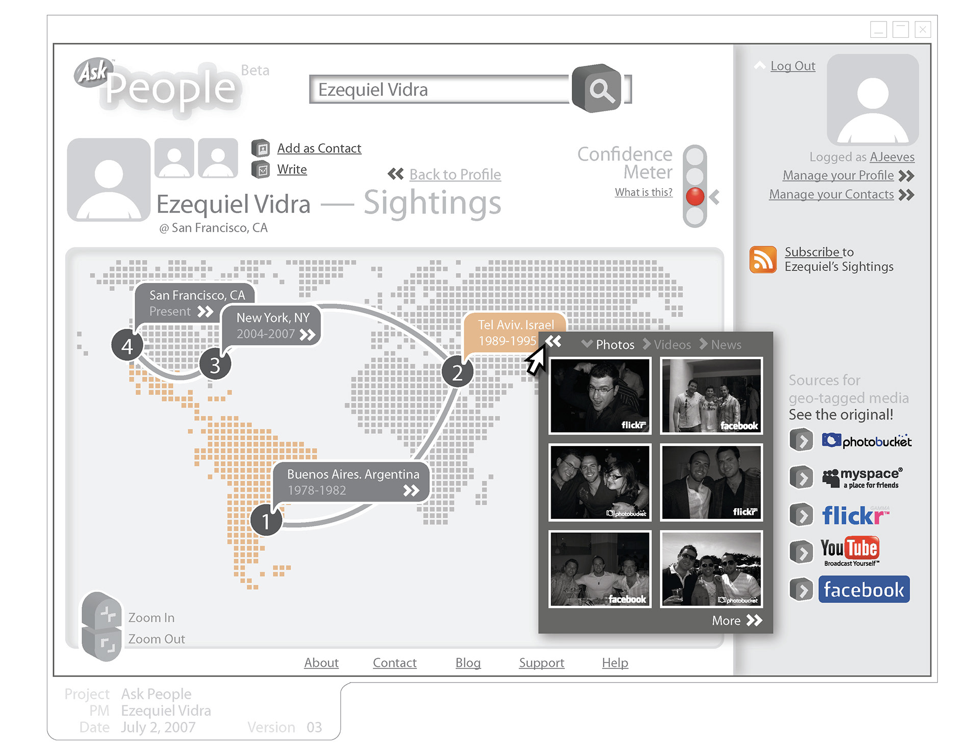 Ask.com developed functioning prototypes for a people search engine. These are the early sketches, wireframes, and proposed functionality.