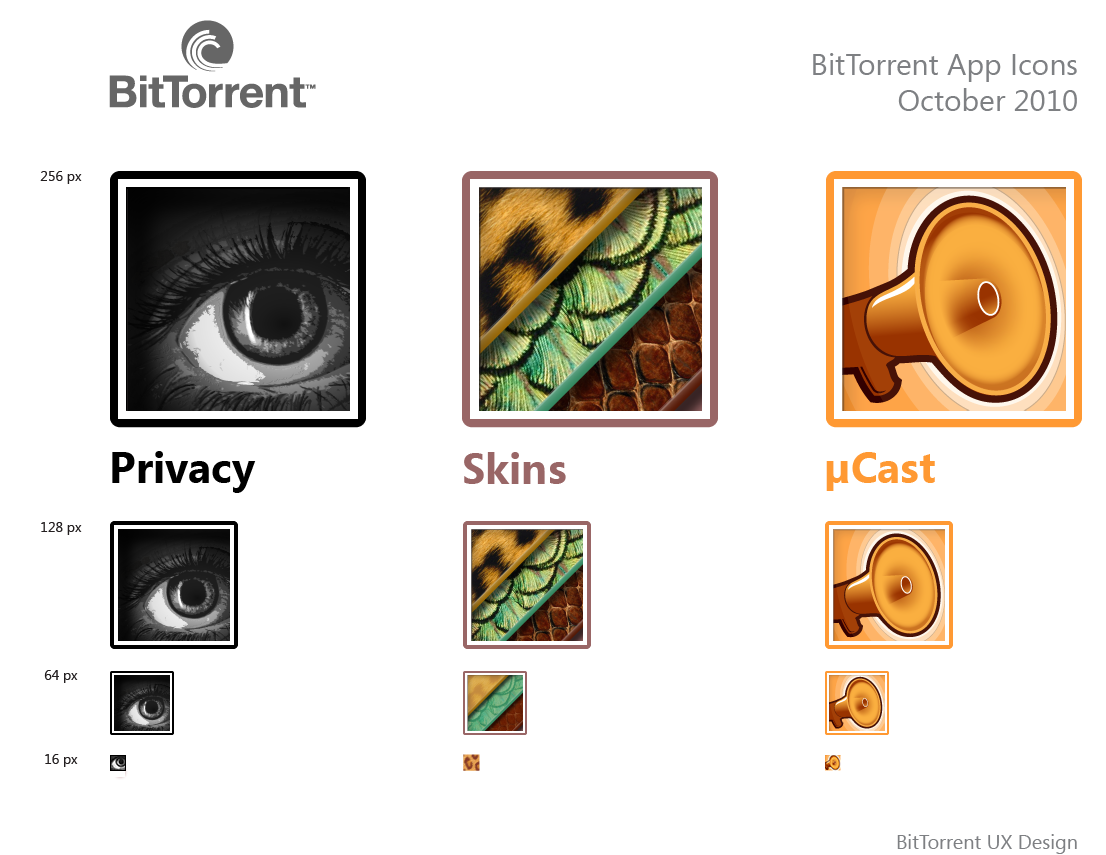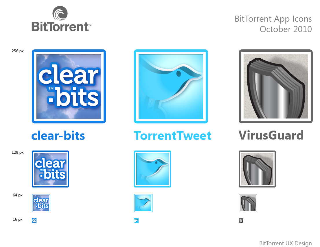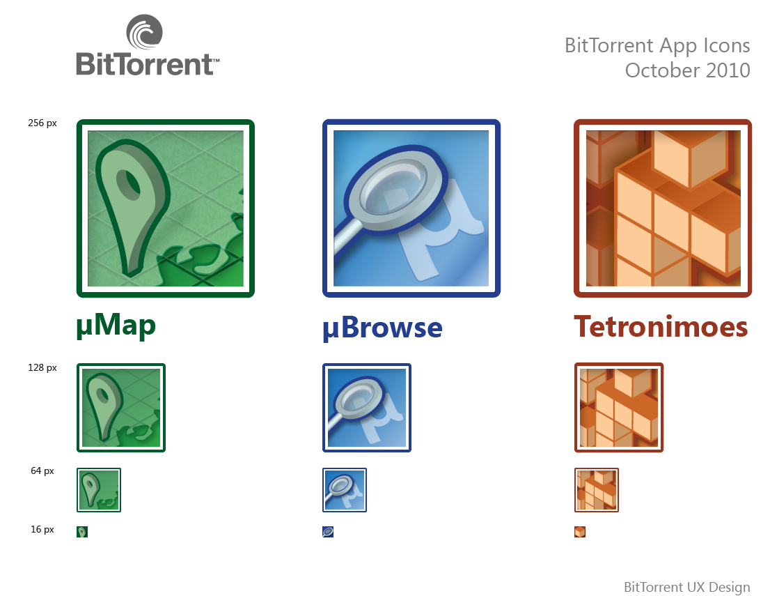 Both the BitTorrent and µTorrent client software adopted an ecosystem of media channels. These were the initial icons to set the standard.