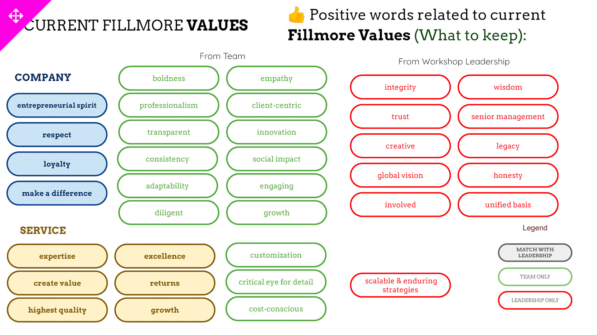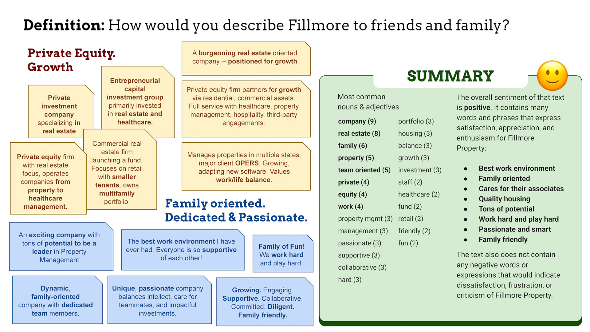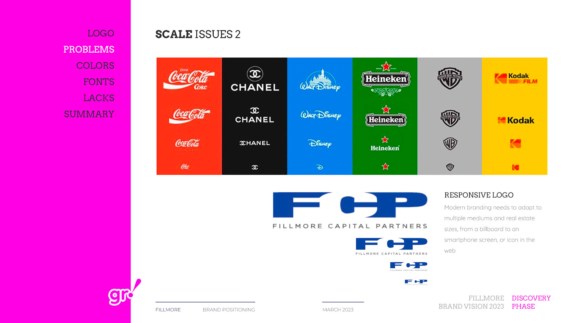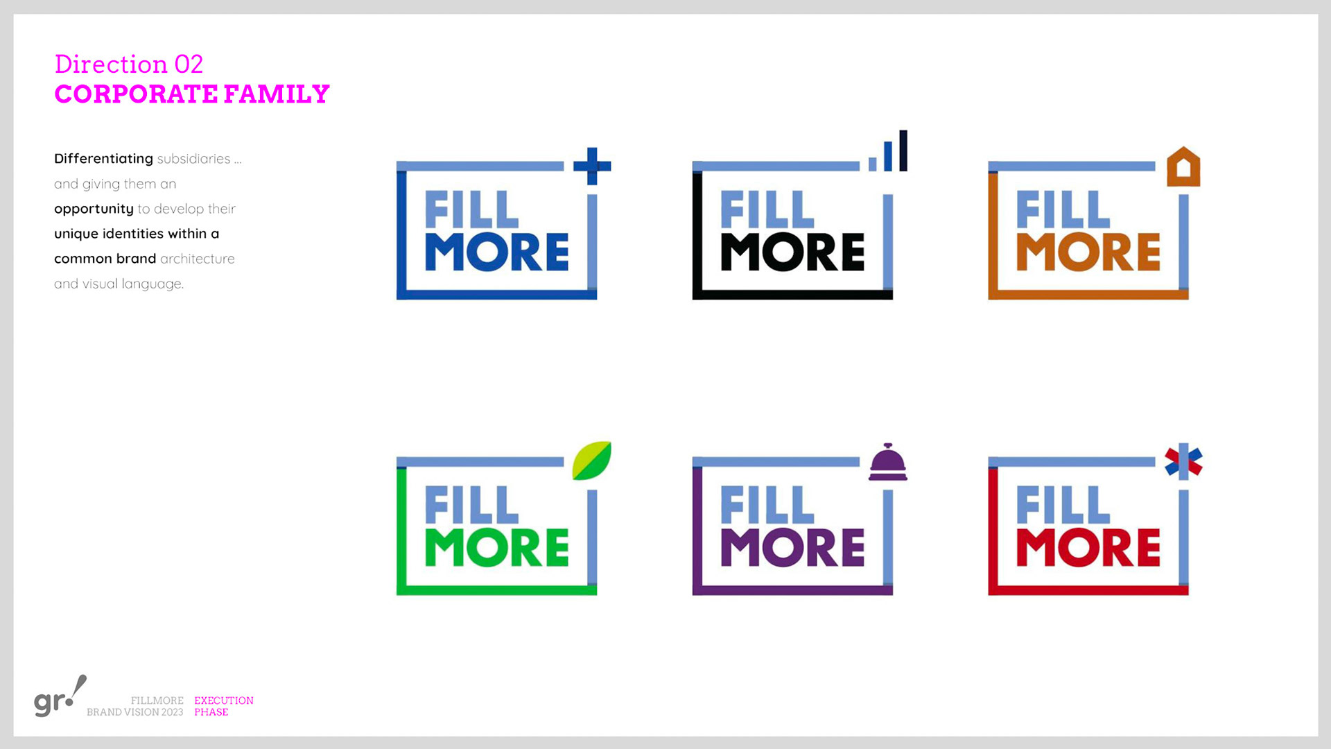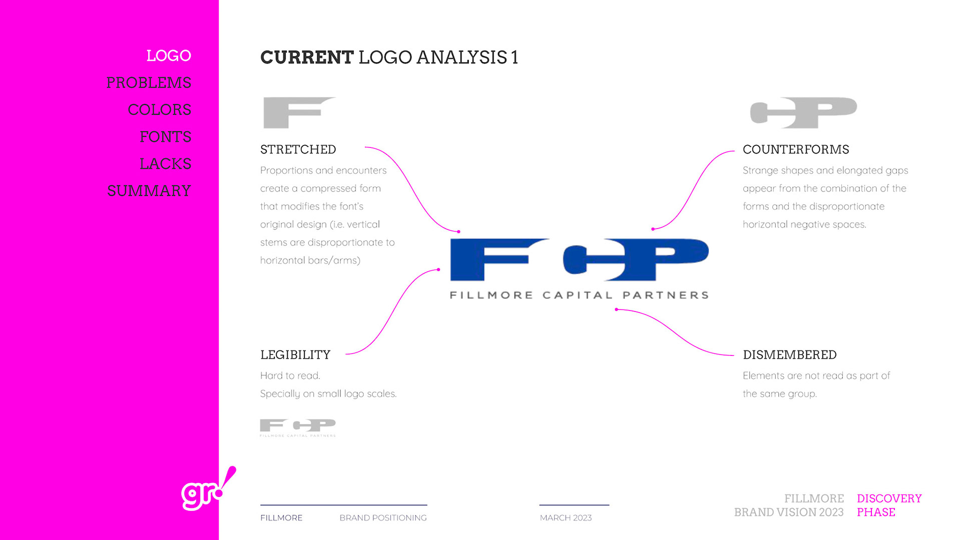 Rebrand of a private equity real estate firm Fillmore Capital Partners LLC, after 1-to-1 interviews and workshops with teams and leadership.
