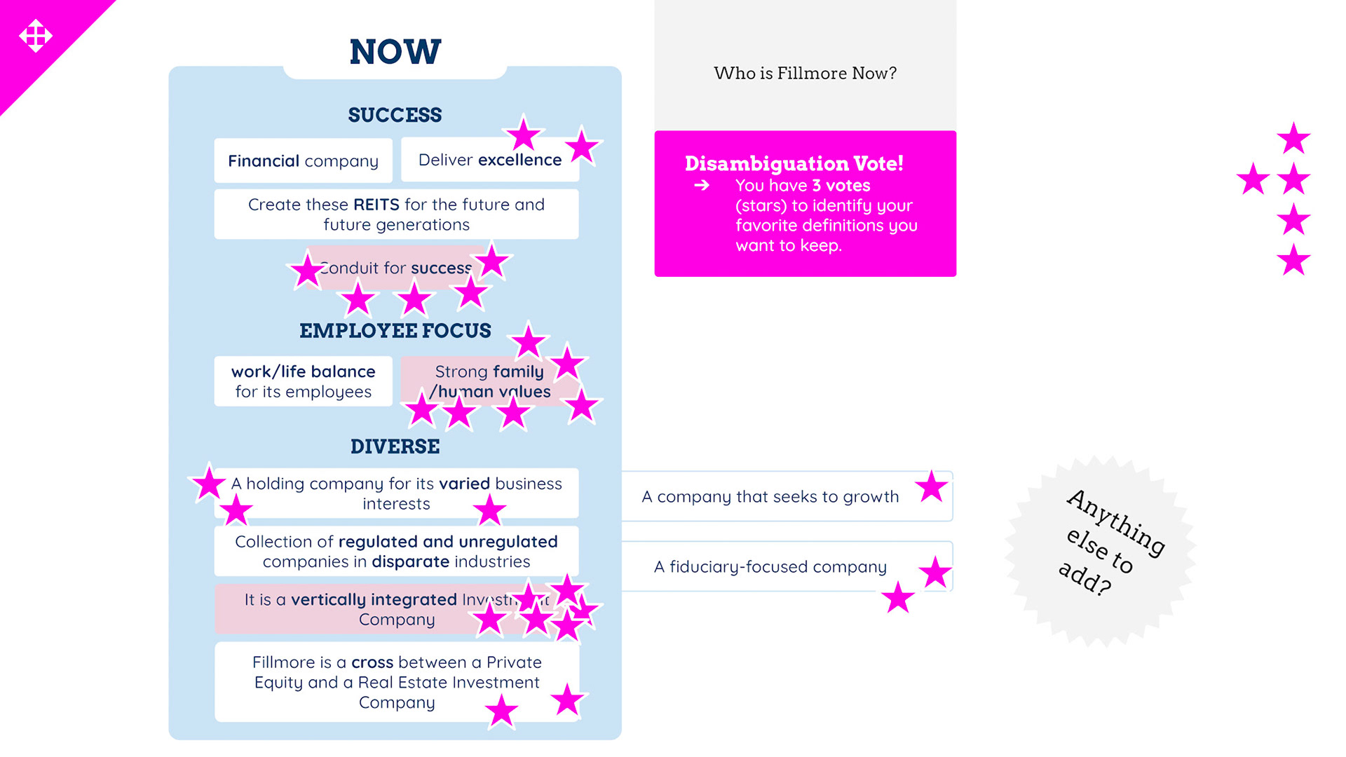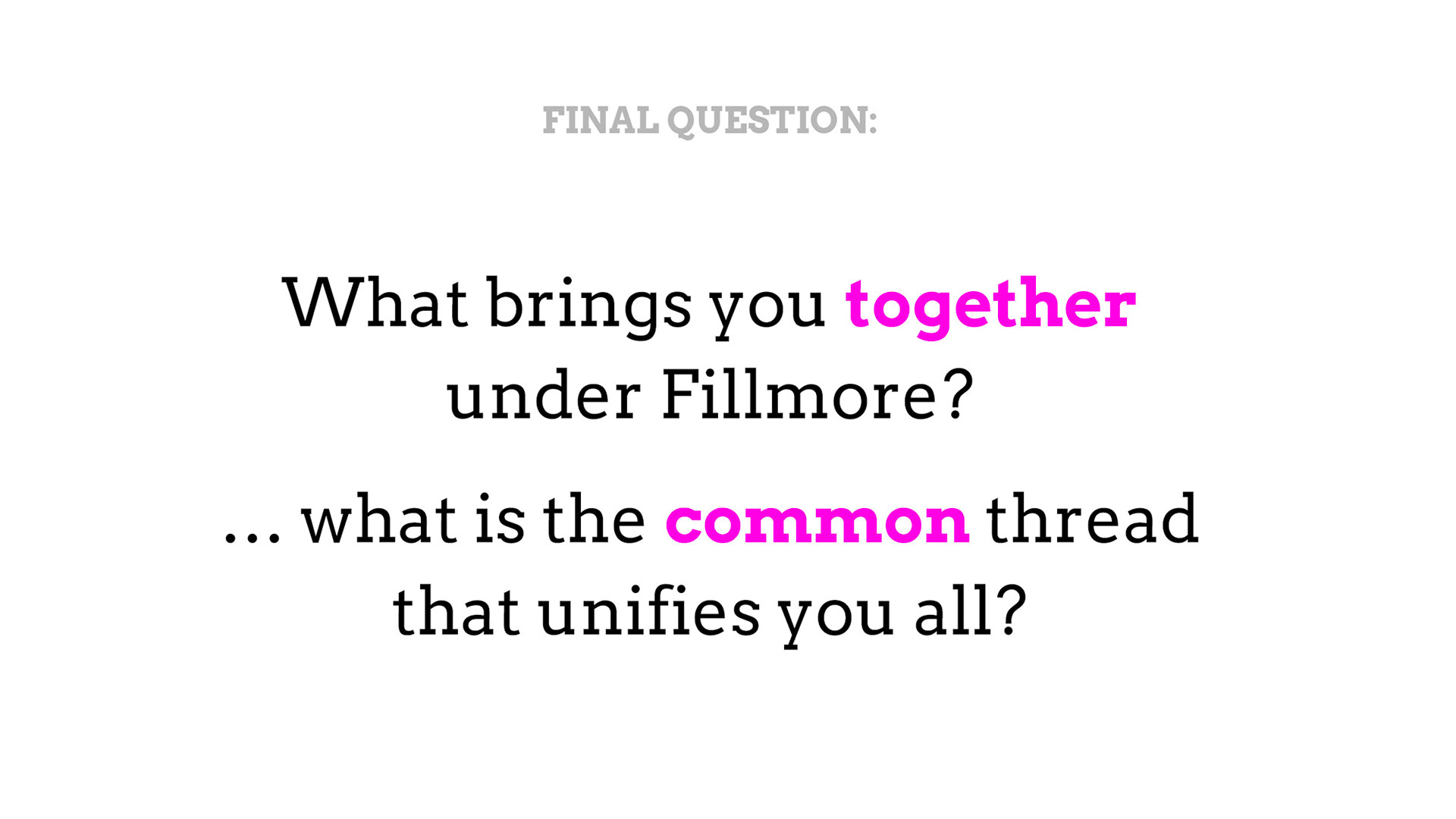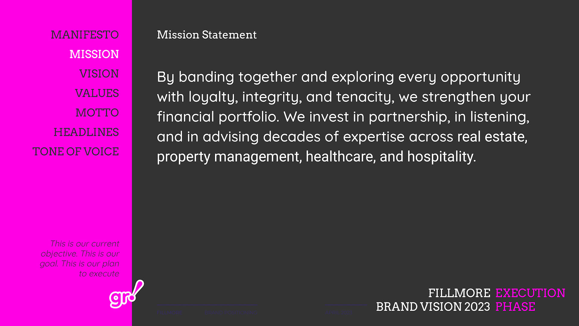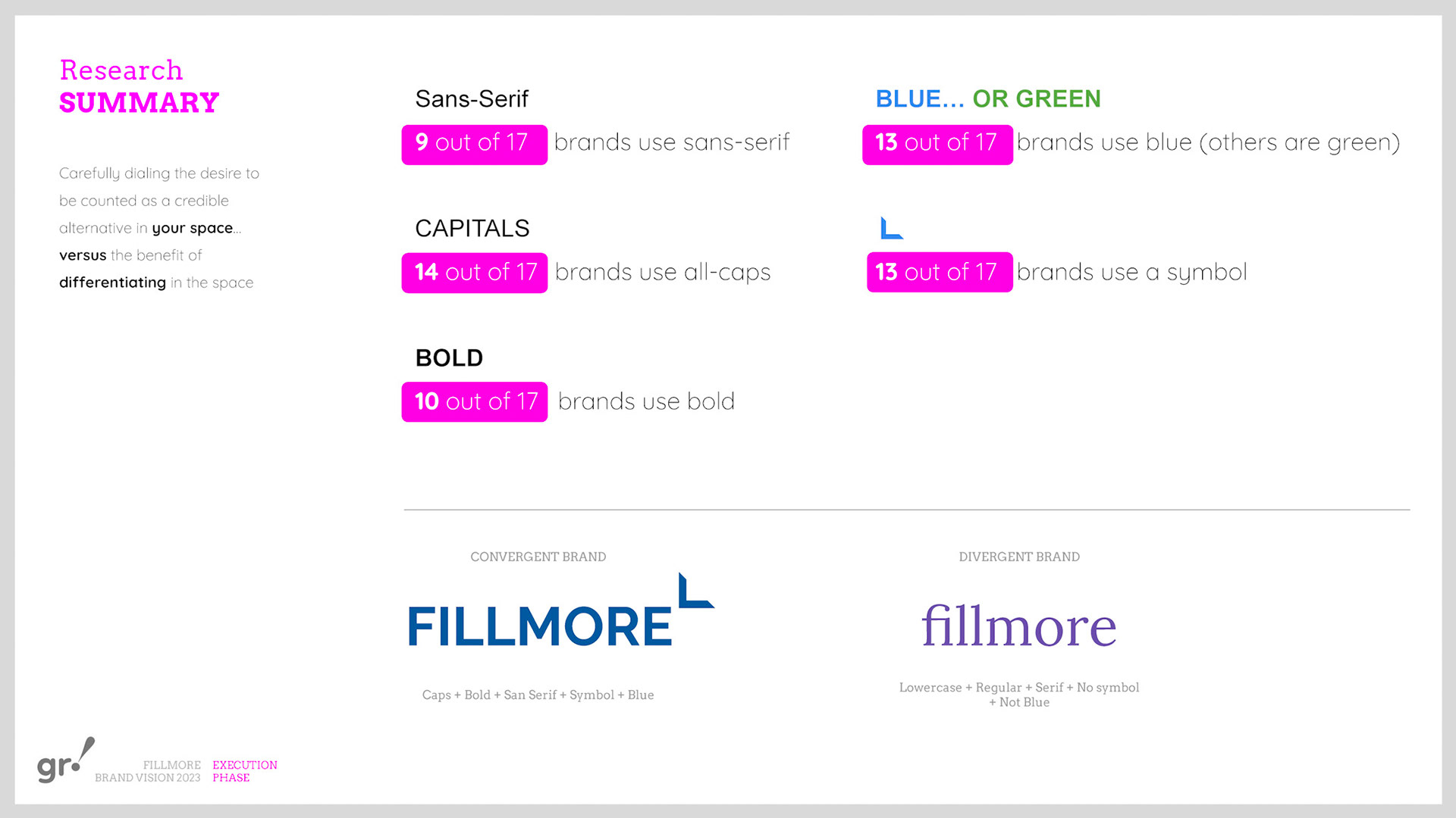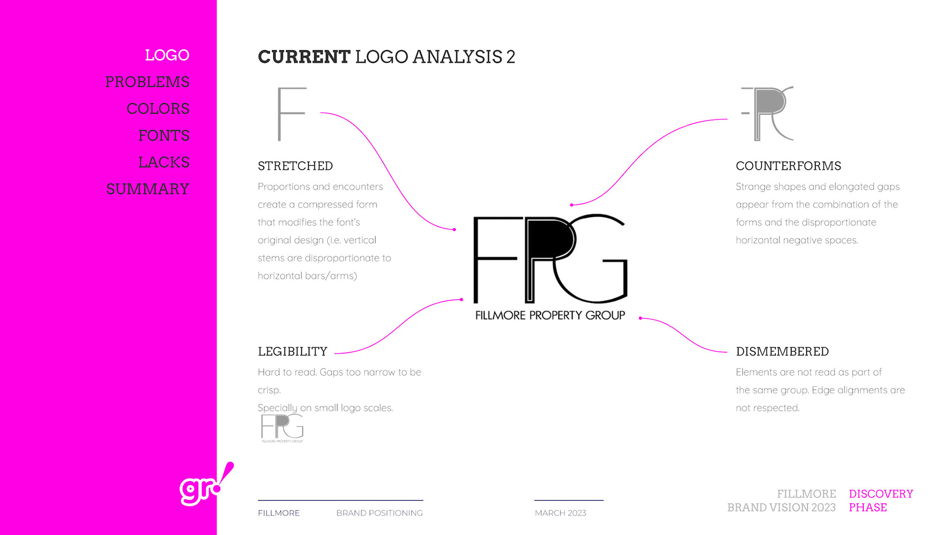 Rebrand of a private equity real estate firm Fillmore Capital Partners LLC, after 1-to-1 interviews and workshops with teams and leadership.