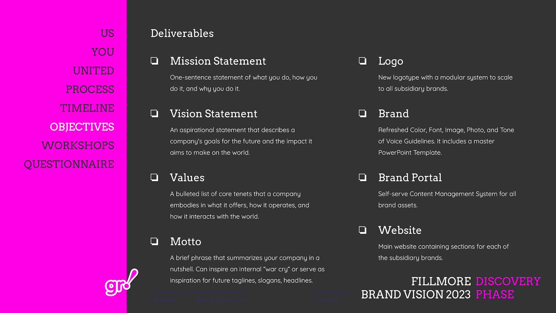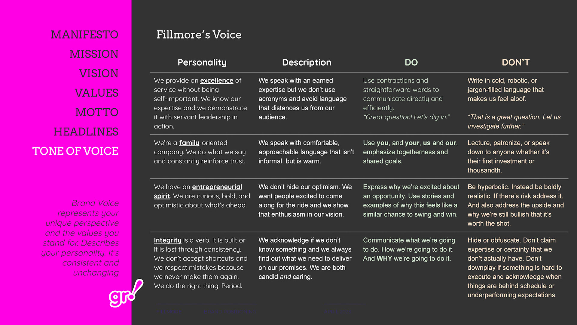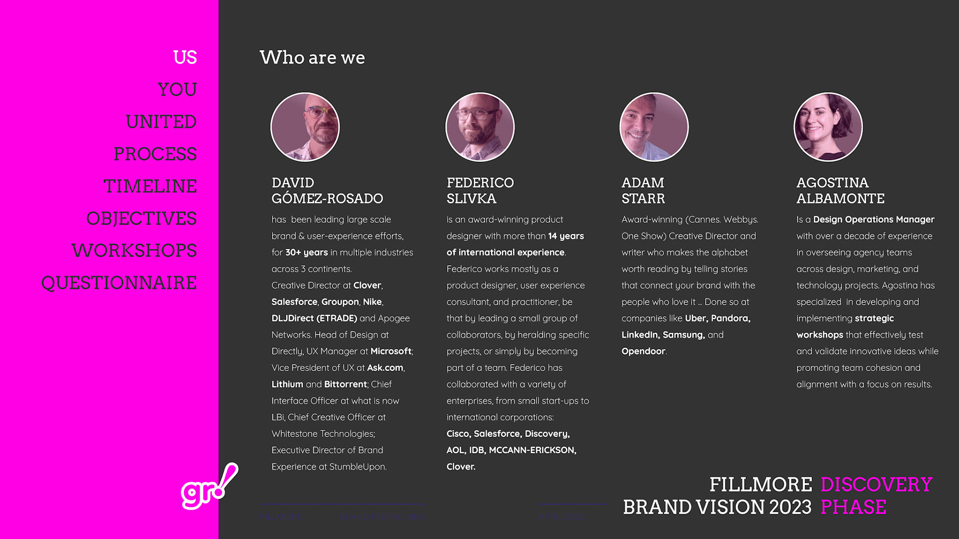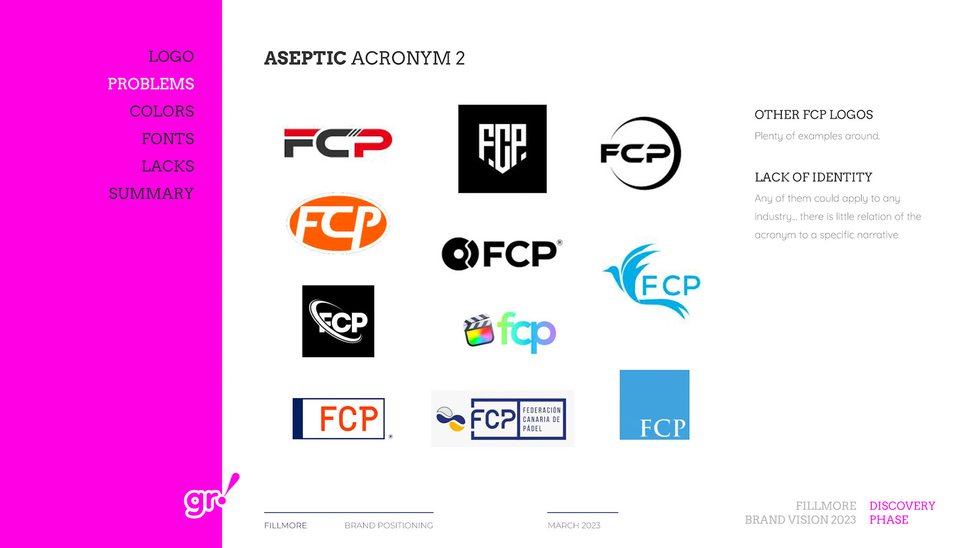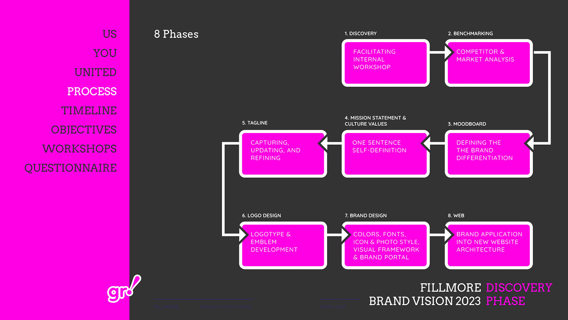 Rebrand of a private equity real estate firm Fillmore Capital Partners LLC, after 1-to-1 interviews and workshops with teams and leadership.