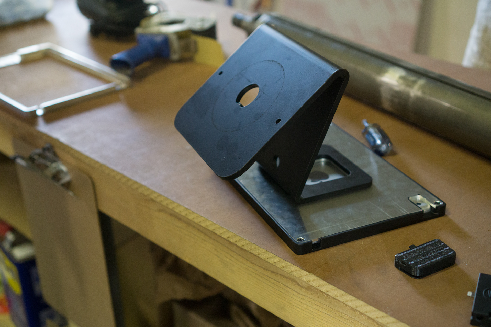 Unlike most of Breadcrumb competitors that use quickly aging plastic, or inexpensive flimsy punched-out plates. This solution was designed with CNC-machined 6061 high grade aluminum, ensuring longevity despite the rigors and abuse in a restaurant’s behind-the counter standard placement. The iunit can sustain hits by service trays, full lean-on from staff, and dirt and grime will not permanently mar its surface which is easy to clean with few top-facing gaps or crannies. Unlike alterantives as well, the reader is side-mounted to avoid detritus fallout into the gap. Also unique, is the construction: All our components are modular and if the reader breaks, or if the tablet changes form-factor, Breadcrumb can change and ship a single part (in a simple envelope), not the entire unit. The stands are fully built in North Carolina, so we don’t need to ship from overseas.